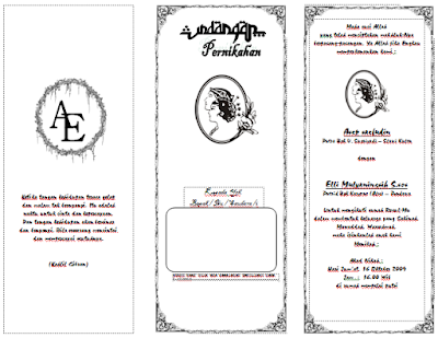 Atau hanya anda yang sedang membutuhkan settingan undangan untuk pernikahan? Undangan pernikahan adalah bagian penting dari sebuah pernikahan. Dengan, tentu saja bagi sepasang calon pengantin adalah datangnya orang-orang dekat, teman-teman, keluarga untuk turut menyaksikan sebuah moment paling indah dan bersejarah dalam hidup mereka. Sebenarnya undangan pernikahan bisa dibentuk dengan format dan lay out desain sederhana. Akan tetapi jika segalanya memang memungkinkan, kenapa tidak memberikan yang terbaik? Berikut apa yang saya miliki mungkin bisa membantu anda.